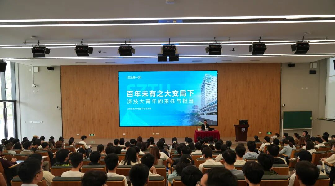 “你面前的世界乱象丛生,你身后的祖国稳如泰山。”3月25日上午,深圳技术大学党委书记陈秋明以《百年未有之大变局下深技大青年的责任与担当》为题讲授思政第一课,结合2026年APEC会议落地深圳的时代机遇,从洞察世界变局、把握城市与学校机遇、践行青年使命三个维度,为学子明晰成长方向,勉励深技大青年以青春之姿挺膺时代担当,在鹏城沃土书写无悔华章。察势明变:读懂百年变局里的中国力量 “察势者智,驭势者赢。...